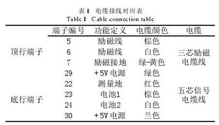 ---將用于檢測傳輸是否正確的三芯勵磁電纜線和五芯信號電纜線按如下表格1連接:切記轉(zhuǎn)換器和傳感器上的電纜線連接一定要一一對應。